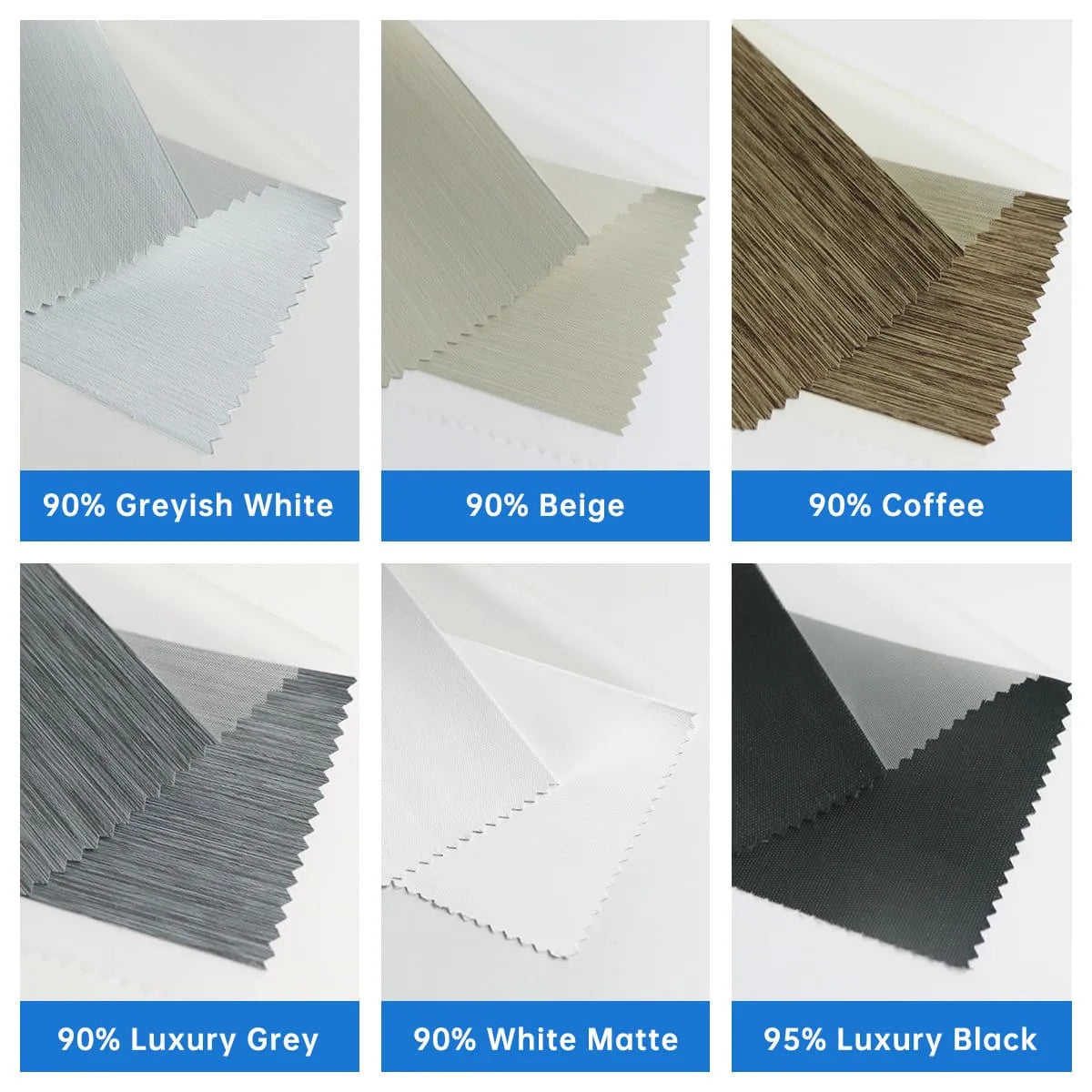 - Premium Fabric Samples: Feel the texture and assess the quality firsthand to find the perfect shade for your home. Contain all 12 colors of Uilvffo Zebra Shades fabric samples.