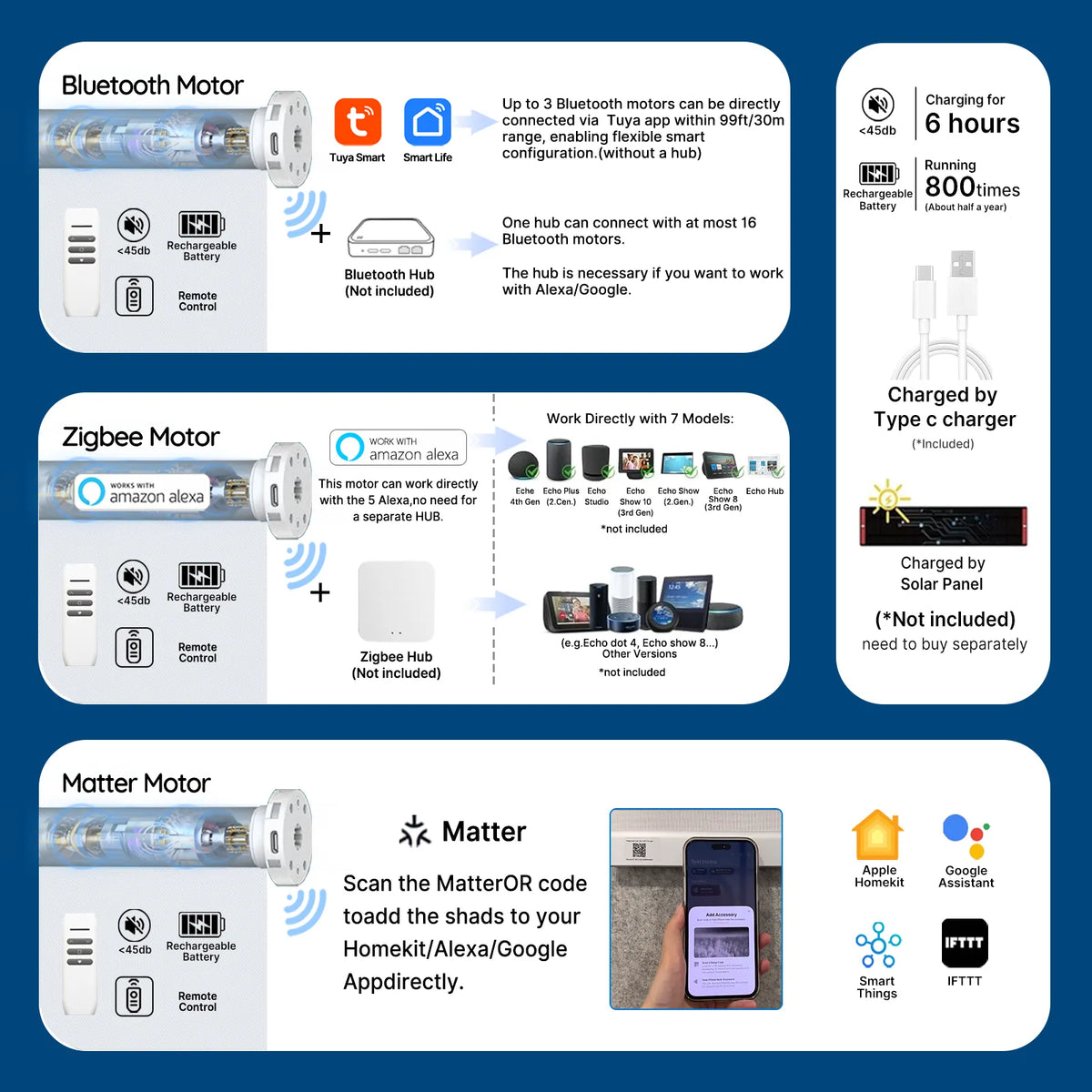- Remote Choices: Choose a single-channel remote (controls one shade) or a 16-channel remote (manages multiple grouped shades) to suit different setups.